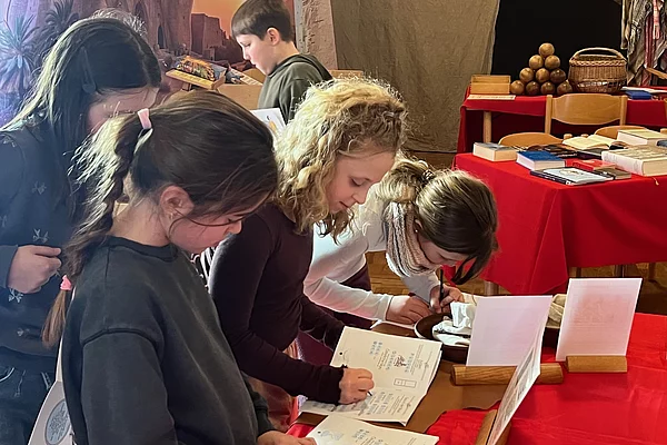 Am Dienstag, den 03.02.2026 durften die vierten Klassen in die Bibelausstellung nach Kirchanschöring fahren. Das Motto lautete „Die Bibel mit allen Sinnen entdecken.“ Wir durften ein kleines Arbeitsheft bearbeiten. Das Brotbacken mit dem Pfarrer machte am meisten Spaß. Gemeinsam durften wir dann das Brot essen. Mit vollen Magen fahren wir nach Hause. Es war ein sehr schöner Ausflug. Paula, 4a