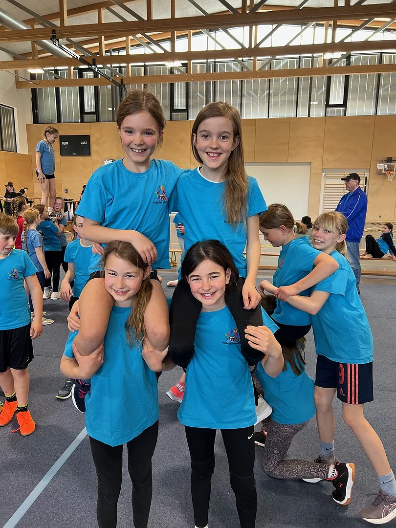 Am Mittwoch, den 25.03.2026 fand die Kreismeisterschaft der Grundschulen in Siegsdorf statt. Dort traten insgesamt 20 Mädchen-Mannschaften und 13 Jungen-Mannschaften an. Auch die Grundschule Grabenstätt nahm an der Kreismeisterschaft teil und wir waren mit zwei Mädchen-Mannschaften, einer Jungen-Mannschaft und den Lehrerinnen Frau Abels und Frau Schultes vertreten. Wir hatten in der Markus-Eisenbichler-Halle großen Spaß an den Geräten, z. B. am Barren, dem Reck und noch vielem mehr. Wir erreichten mit den starken Mädchen-Mannschaften den 5. und 9. Platz. Die Jungs erreichten den 12. Platz. Sieger wurden die Mannschaften aus Haslach bei den Mädchen und bei den Jungs-Mannschaften Siegsdorf.