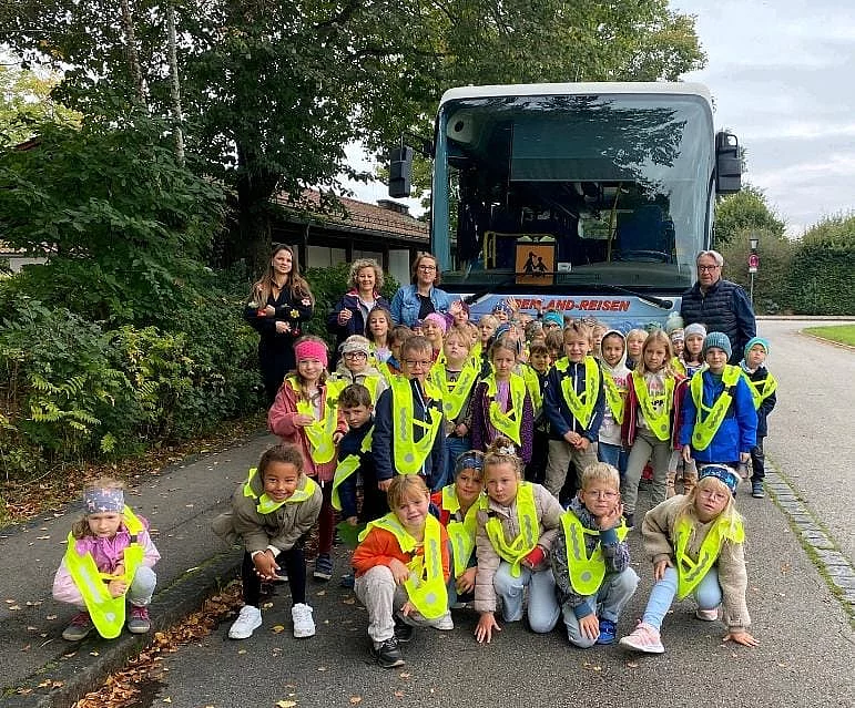 Wie jedes Jahr am Schuljahresanfang fand für die Kinder der ersten Klassen das Bustraining statt. Die Schulanfänger erfuhren alles Wichtige rund um das Busfahren und das Verhalten an der Bushaltestelle. Nach einer kleinen Busfahrt durften alle auf dem Sitz des Busfahrers Platz nehmen, um selbst zu erleben, wie wichtig es ist, ausreichend Abstand zum Bus zu halten, um gut gesehen zu werden. Ein herzliches Dankeschön geht an die AOK Bayern, die uns wie jedes Jahr, die Warnwesten für die Erstklässler kostenlos zur Verfügung gestellt hat!